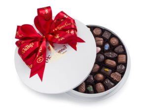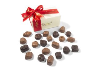 The exquisite Charbonnel et Walker white ballotin gift box. Filled with our finest Milk and Dark Chocolates and beautifully presented with a red satin ribbon. This ballotin gift box is…Large Fine Milk & Dark Chocolate Ballotin Gift Box with Red Ribbon