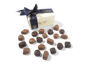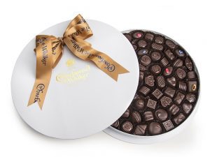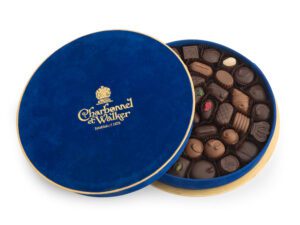 The exquisite Charbonnel et Walker white ballotin gift box. Filled with our finest Milk and Dark Chocolates and beautifully presented with a navy satin ribbon. This Ballotin gift box is…Large Fine Milk & Dark Chocolate Ballotin Gift Box with Navy Ribbon