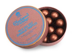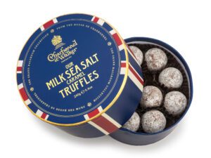 These delicious Milk Chocolate Truffles are filled with a decadent caramel and sea salt centre, lightly dusted in icing sugar.Union Flag Milk Sea Salt Caramel Chocolate Truffles