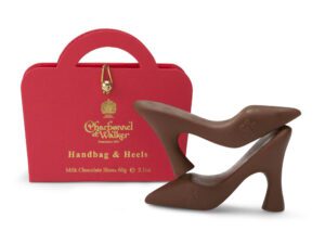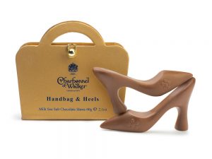 This delightful pair of milk chocolate high heels are presented in an elegant pink handbag.Pink Handbag and Milk Chocolate Heels