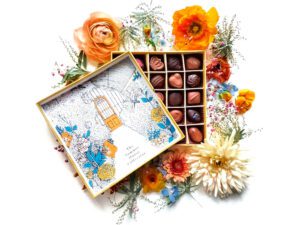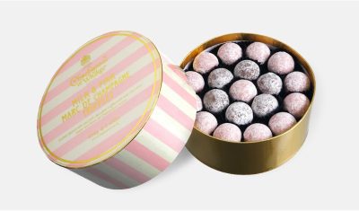 This glorious gift box is filled with decadent Pink Marc de Champagne and Milk Marc de Champagne Truffles. Beautifully illustrated with a garden decked in cascading blooms and an iridescent…Summer In Bloom Milk & Pink Marc de Champagne Truffles