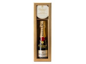 This smartly presented gold box contains a 200ml bottle of Moet & Chandon and a 44g box of our delicious Milk Marc de Champagne TrufflesMini Milk Marc De Champagne Truffle And Champagne Gift Set