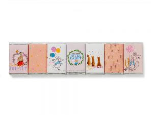 A beautiful Peter Rabbit gift box filled with delicious Milk and White Chocolates, each one illustrated with an image of Peter Rabbit and his friends.Adorable Peter Rabbit Milk and White Chocolates Book Box