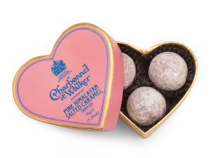 A perfectly pink mini heart filled with three Pink Himalayan Salted Caramel Truffles. Each truffle has a salted caramel centre with our signature pink chocolate exterior, lightly dusted in icing…Pink Himalayan Salted Caramel Chocolate Truffles – Pink Mini Heart