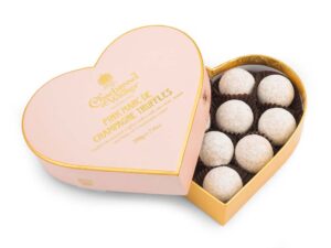 A luxurious white chocolate truffle with a hint of strawberry and velvety milk chocolate Marc de Champagne centre, all rolled in a little powdered sugar for a touch of elegance.Pink Marc de Champagne Chocolate Truffles – Pink Mini Heart