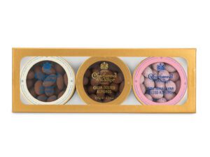 A moreish and magical gift set of Sea Salt, Cocoa Dusted and Pink Himalayan salted Almonds, presented in an elegant Charbonnel et Walker gift box.Trio of Almonds Gift Set
