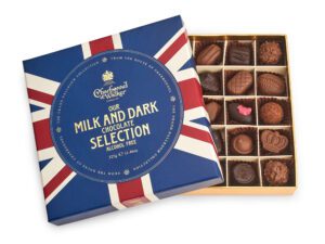 This striking gift includes beautifully enrobed chocolates with an assortment of delicious centres. All hand finished with signature swirls, delicately placed nuts or decorations.Union Flag Fine Milk and Dark Chocolate Selection