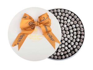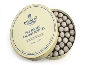 A statement chocolate gift box for sharing with friends and family. Sweet liquid caramel is delightfully paired with hints of sea salt, all captured in a velvety Milk Chocolate shell…Luxurious 2000g Boite Blanche with Milk Sea Salt Caramel Truffles