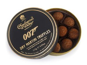 Shaken, not stirred, obviously. These special 007 dark chocolate martini truffles are filled with a luxurious infusion of vodka, gin and rich chocolate, with a twist of lemon.007 Dry Martini Truffles