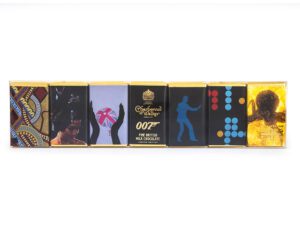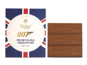 Exuding sartorial British style, a delicious partnership with James Bond and this 007 British Fine Milk Chocolate Bar.007 British Fine Milk Chocolate Bar