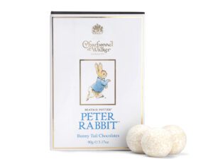 Delight this Easter with these scrumptious Peter Rabbit Bunny Tail Chocolates. White Chocolates are filled with a delicious White truffle centre and lightly dusted in icing sugar.Peter Rabbit Bunny Tail Chocolates
