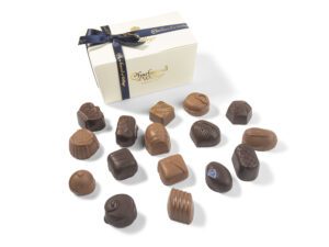 This exquisite box is filled with a signature selection of our finest Milk and Dark Chocolates, this gift box does not contain alcohol. To request your bespoke selection, please contact…Boite Blanche – Fine Milk and Dark Chocolate Selection Gift Box – 1000g (without alcohol)