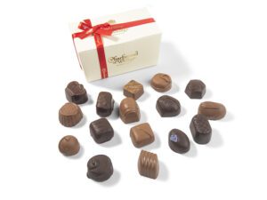 The exquisite Charbonnel et Walker white ballotin gift box. Filled with our finest Milk and Dark Chocolates and beautifully presented with a red satin ribbon. This ballotin gift box is…Small Fine Milk & Dark Chocolate Ballotin Gift Box with Red Ribbon
